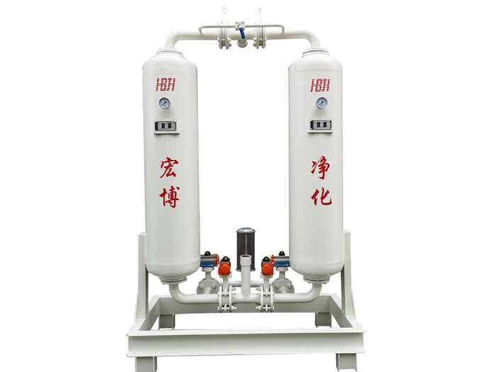 無熱吸附式干燥機是利用變壓吸附的原理,使干燥機在管網壓力下吸附,然后在切換到大氣壓下脫附,并從干燥機出口引回約12-14%的干燥成品氣對干燥劑進一步凈化再生。雙塔交替進行以上過程,向用氣點提供干燥的壓縮空氣。